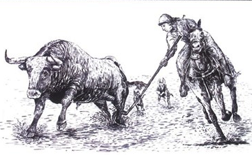 «…el género de vida que hacían los ganaderos para esos años los educaba para la violencia. Las reses se cazaban en monterías, a puras lanzadas, después de perseguirlas entre los bosques con perros entrenados; donde se mataba la res, ahí se desollaba…»